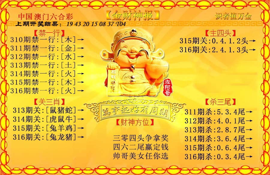 | 315期: 买啥都中 【地肖地肖地肖】开:虎04准 |
