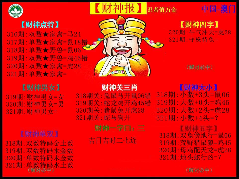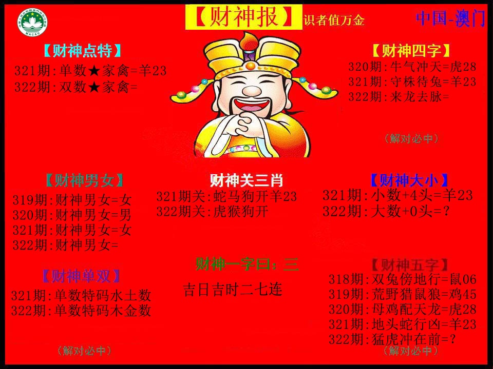 | 322期: 买啥都中 【家肖家肖家肖】开:羊47准 |
